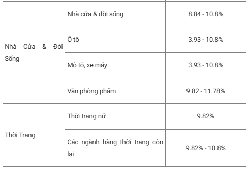 Thuế GTGT: từ 1% đến 5% trên doanh thu.
