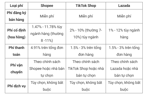 2. So sánh phí sàn Shopee với một số sàn TMĐT khác